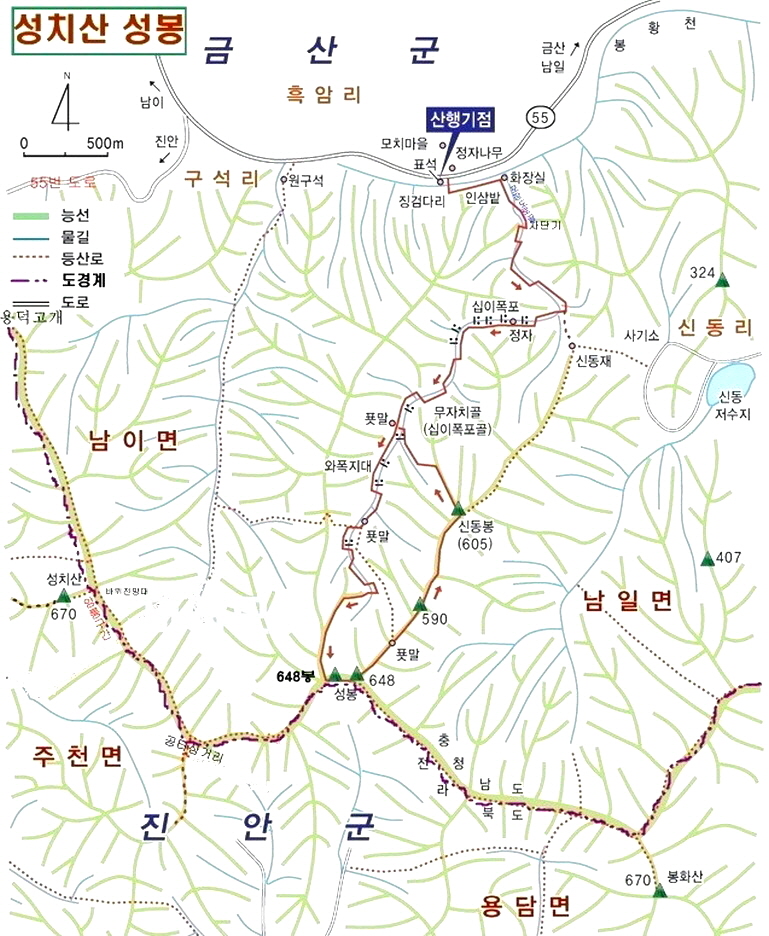 성치산휴게소~12폭포~성봉~12폭포~성치산휴게소