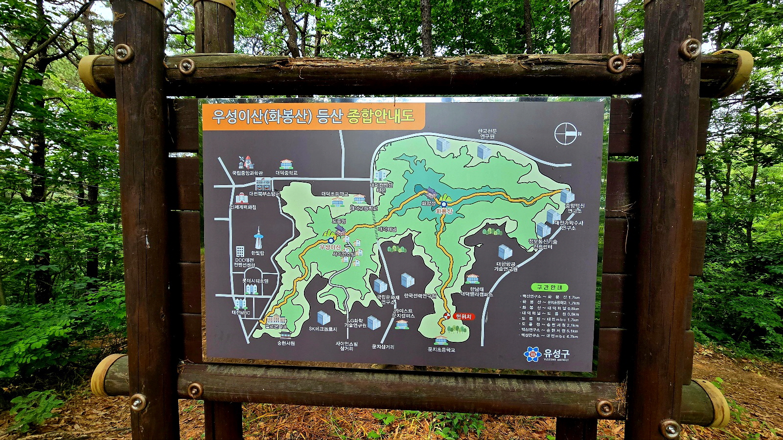 유성소방서에서 출발 우성이산과 화봉산을 거쳐 문지초등학교 쪽으로 하산